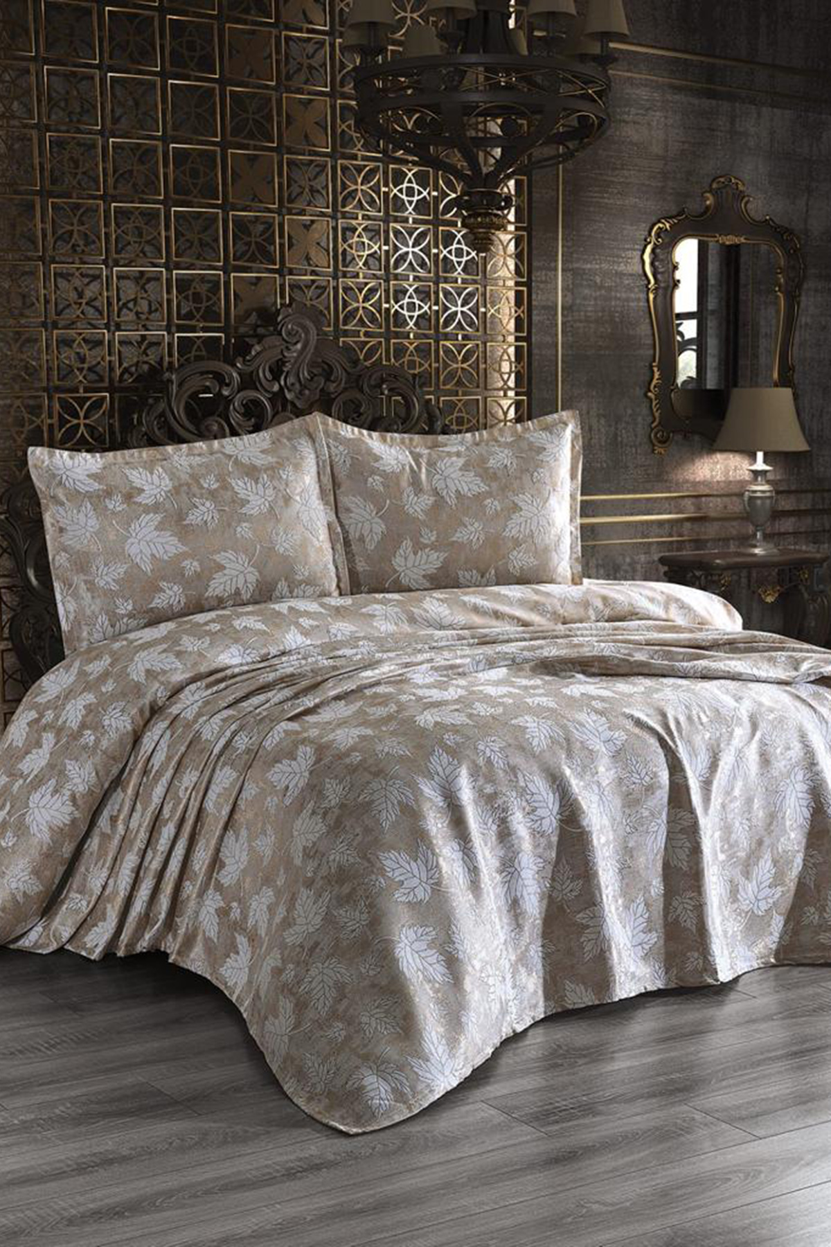 Çeyiz Diyarı Çınar Jakarlı Yatak Örtüsü Gold