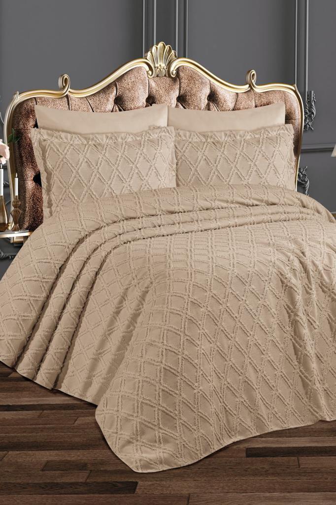 Çeyiz Diyarı Azra 3 Parça Çift Kişilik Pike Takımı Bej
