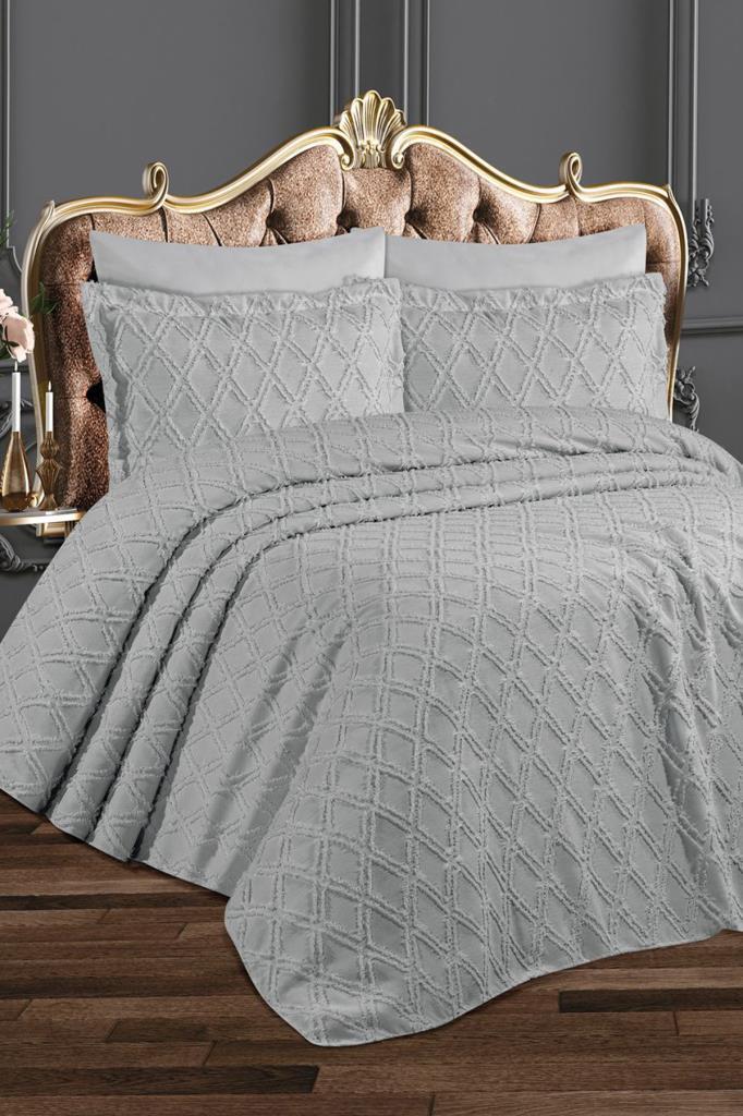 Çeyiz Diyarı Azra 3 Parça Çift Kişilik Pike Takımı Gri