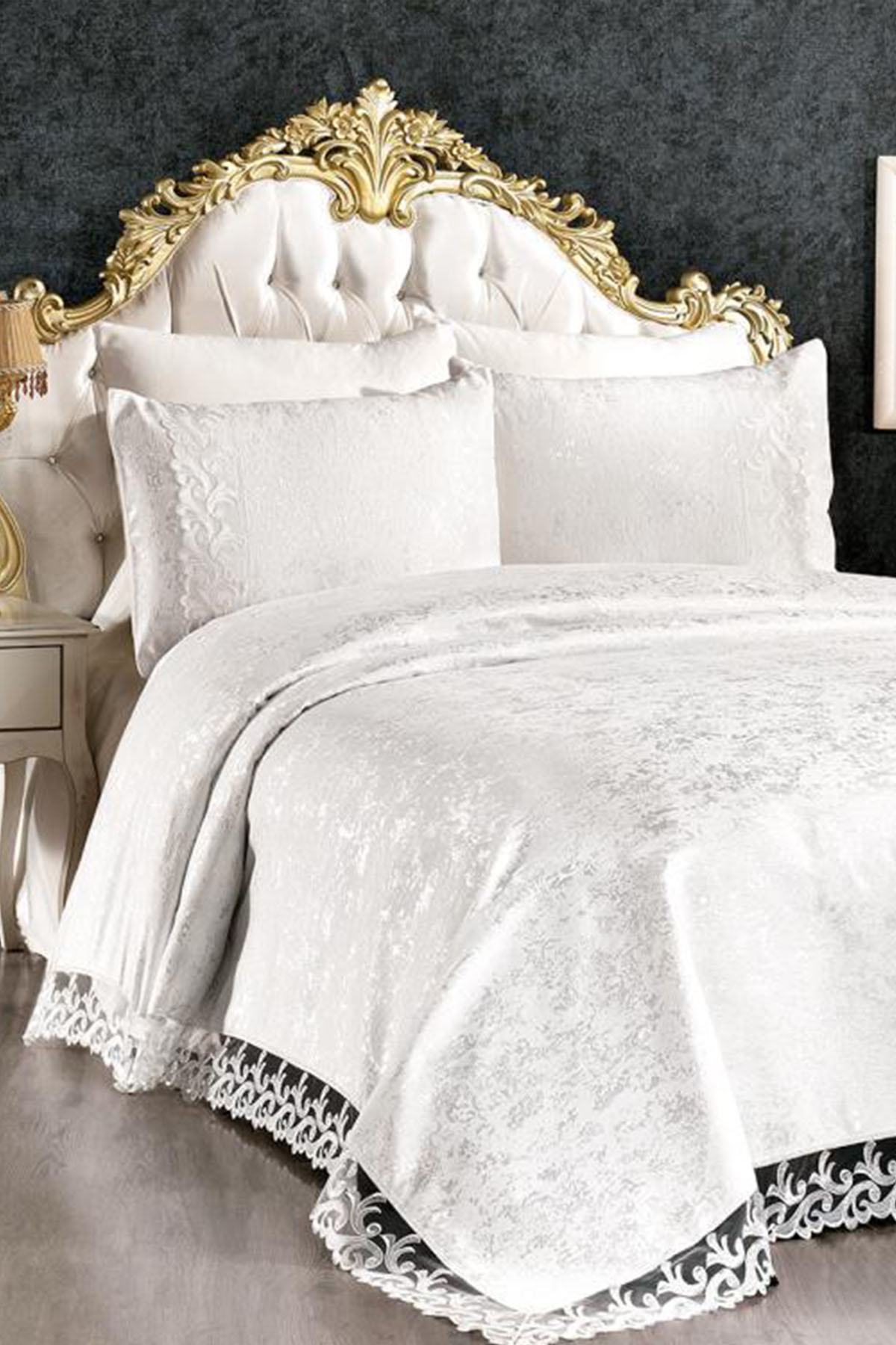 Marka : Çeyiz Diyarı Yatak Örtüsü : 180x240cm Kırlent : 50x70 cm 1 adet Yatak Örtümüzün Üç Kenarında ve Yastık Kılıfında Bulunan Modern Güpür Detayı ile Yatak Odalaırnıza Şıklık Katacak. Hem Şık Hemde Günlük Hayatta Kolaylıkla Kullanabileceğiniz Üründür. Ürün Özel Kutusunda sevk edilmektedir. YIKAMA TALİMATI -Makinada veya elde yıkayabilirsiniz max 30 derecede yıkayınız. -İlk yıkamayı ılık su ile ters çevirerek yıkayınız.her zaman ters yıkamanız ürün ömrünü uzatır. -Çamaşır suyu ile leke sökücü kimyasallar kullanmayınız. -Yıkama esnasında koyu renkleri mümkün olduğunca ayrı tutunuz. -Ilık ütü ile ütüleyiniz. -Islak bekletmeyiniz. -Kurutma makinasında kurutulabilir.