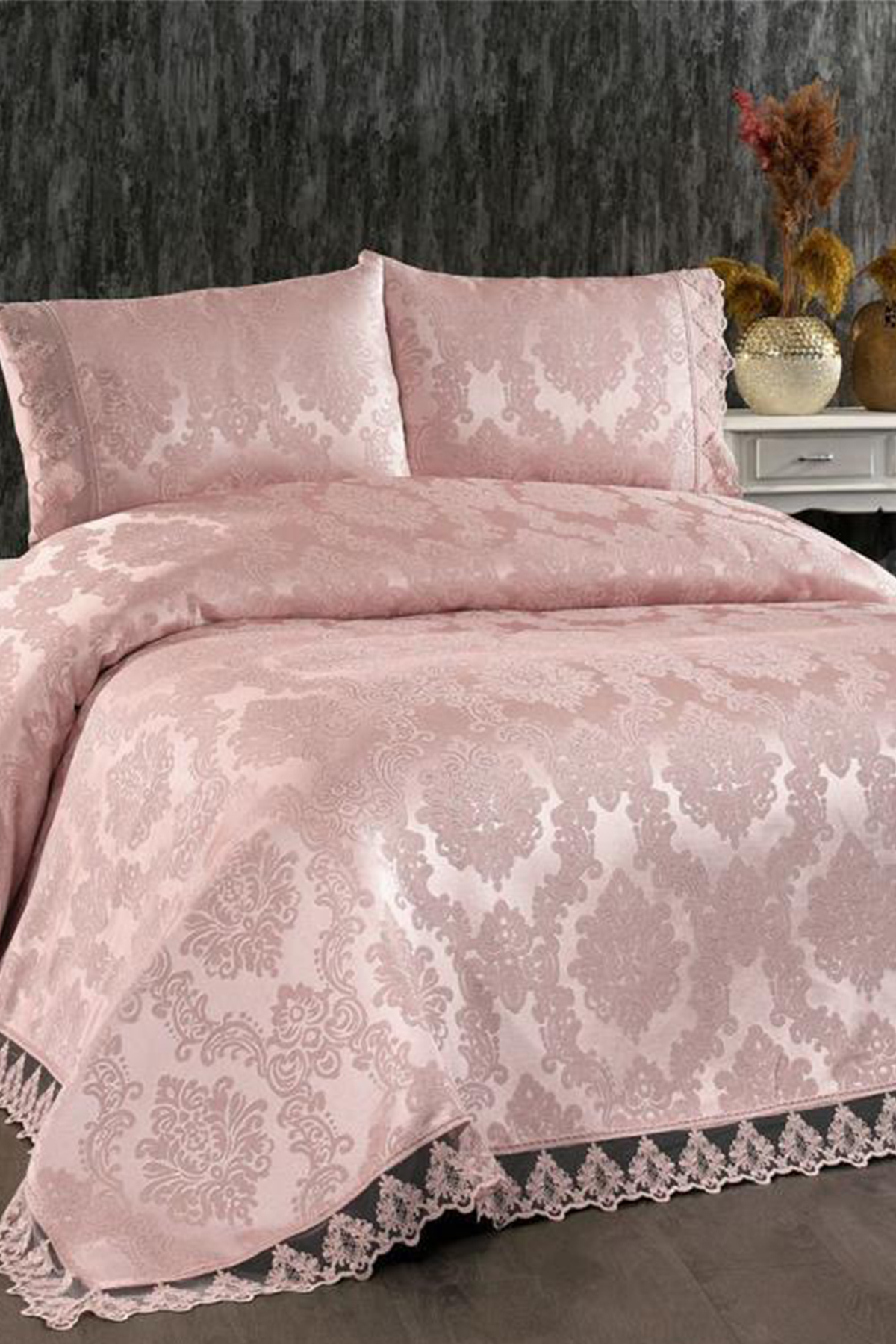 Çeyiz Diyarı Demontis Çift Kişilik Yatak Örtüsü Pudra