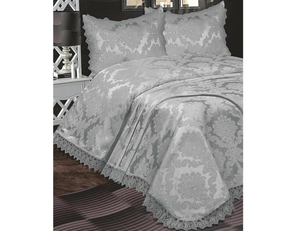 Çeyiz Diyarı Fransız Güpürlü Lunox Yatak Örtüsü Antrasit