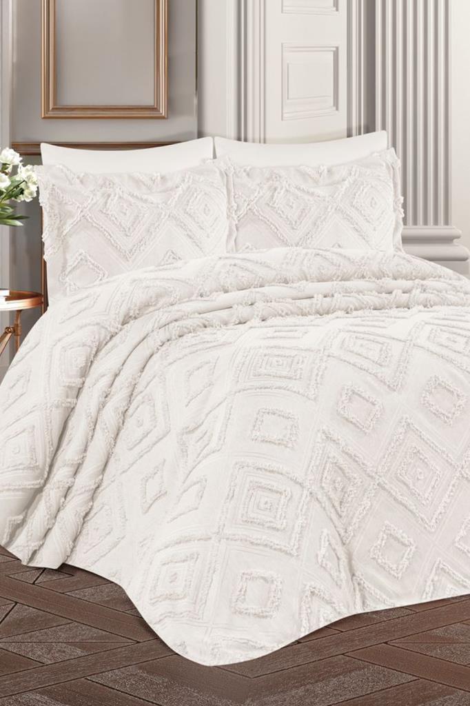 Çeyiz Diyarı Hürrem Sakallı 3 Parça Çift Kişilik Pike Takımı Krem