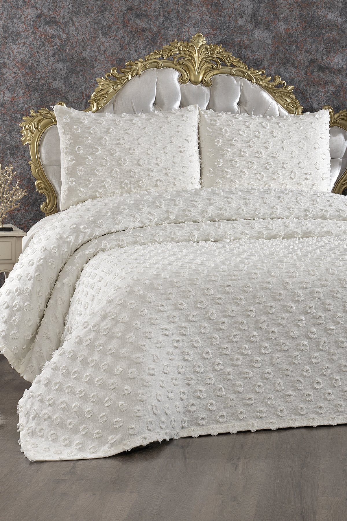 Çeyiz Diyarı Konik 3 Parça Çift Kişilik Pike Takımı Krem