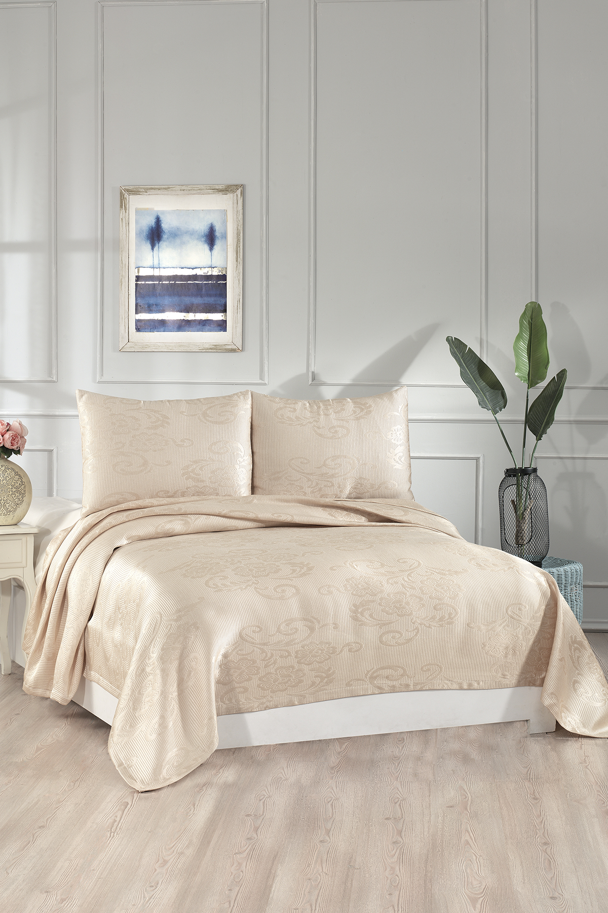 Çeyiz Diyarı Lale Çift Kişilik Yatak Örtüsü Cappucino