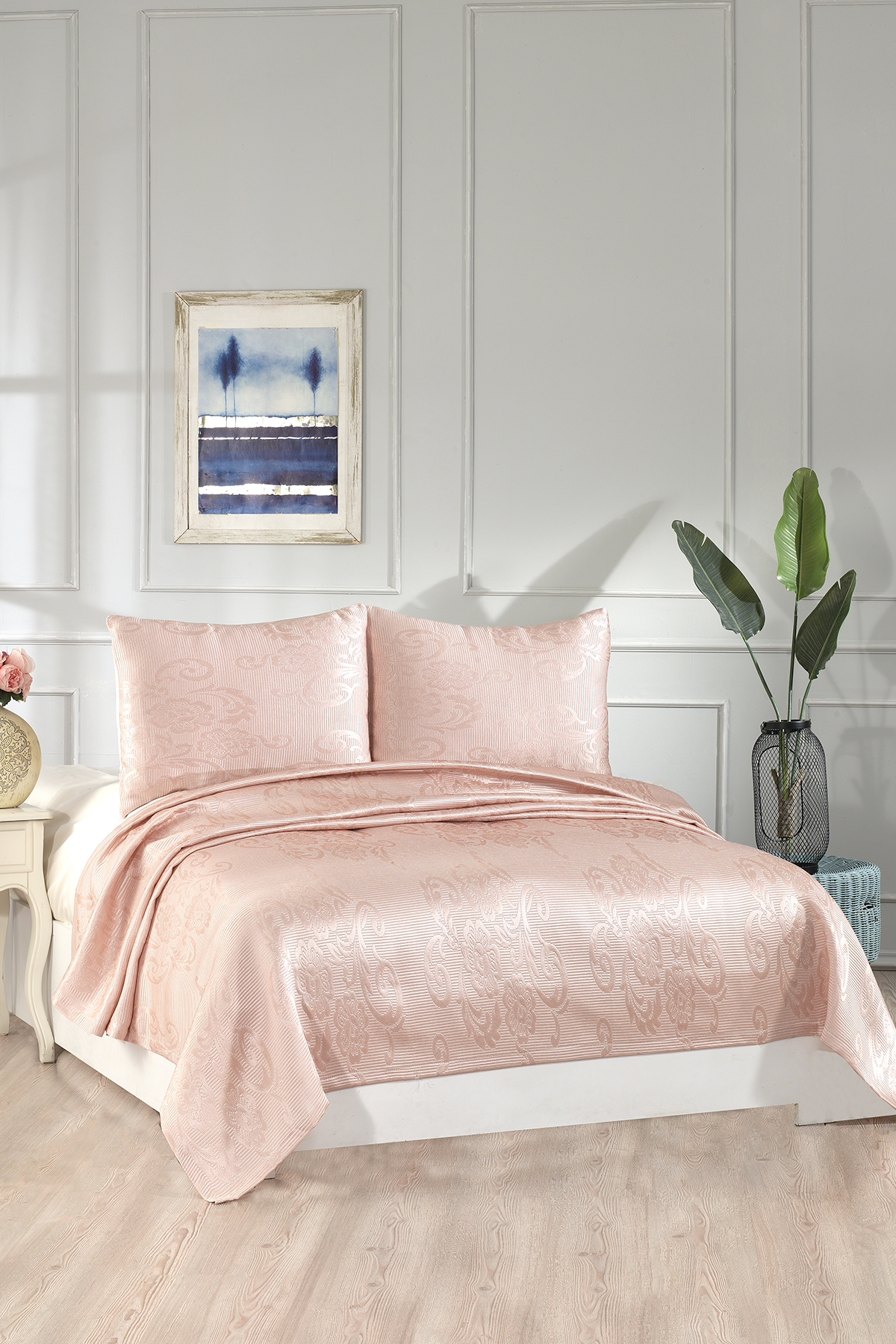 Çeyiz Diyarı Lale Çift Kişilik Yatak Örtüsü Pudra