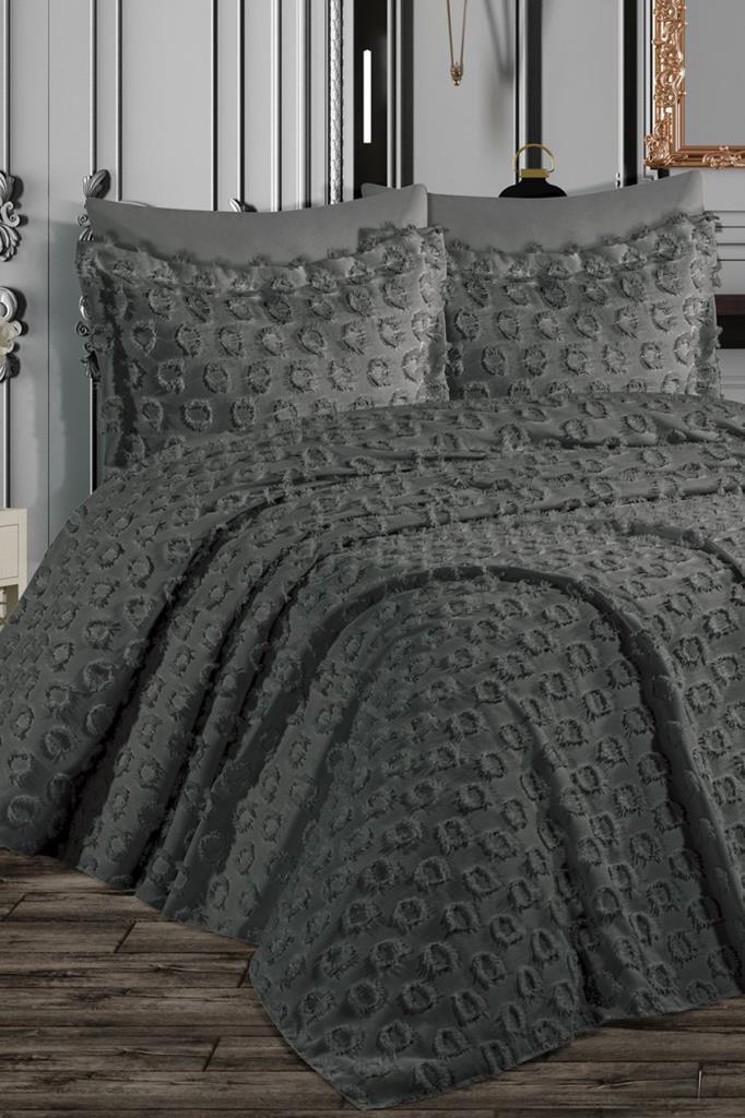 Çeyiz Diyarı Malina Ponpon 3 Parça Çift Kişilik Pike Takımı Antrasit