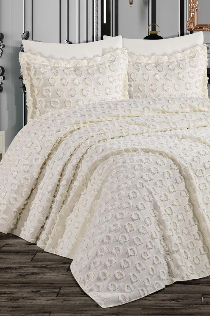 Çeyiz Diyarı Malina Ponpon 3 Parça Çift Kişilik Pike Takımı Krem