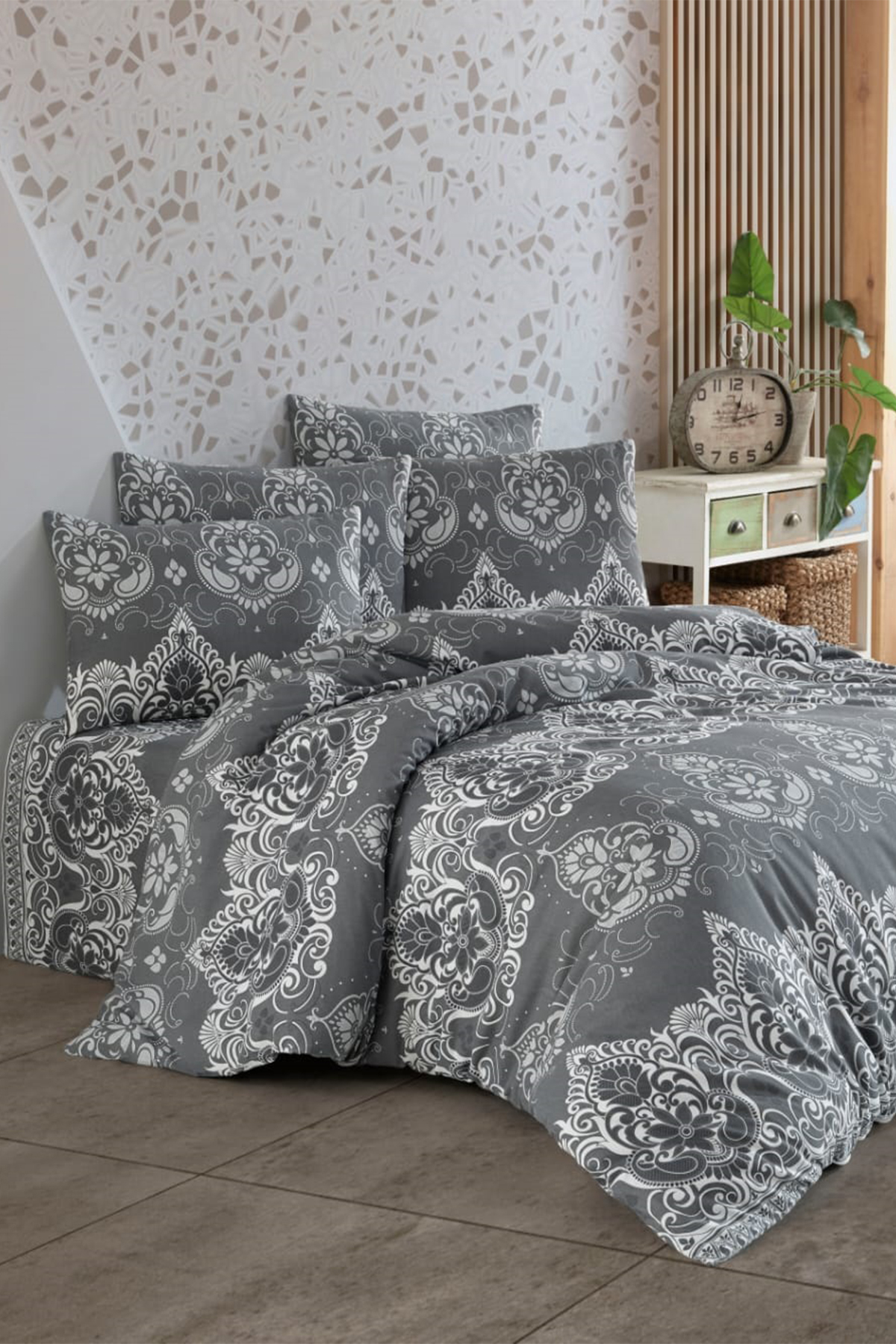 Çeyiz Diyarı Piyare Çift Kişilik Nevresim Takımı Gri