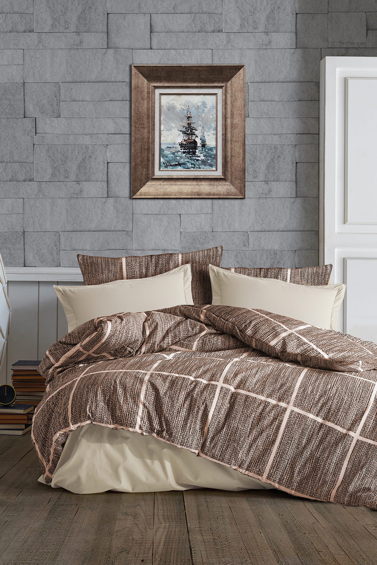 Çeyiz Diyarı Rian Çift Kişilik Nevresim Takımı Kahverengi