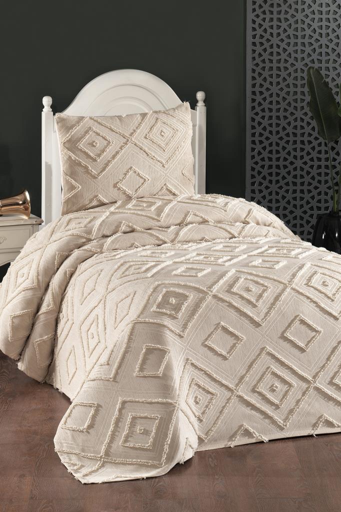 Çeyiz Diyarı Samira 2 Parça Tek Kişilik Pike Takımı Bej