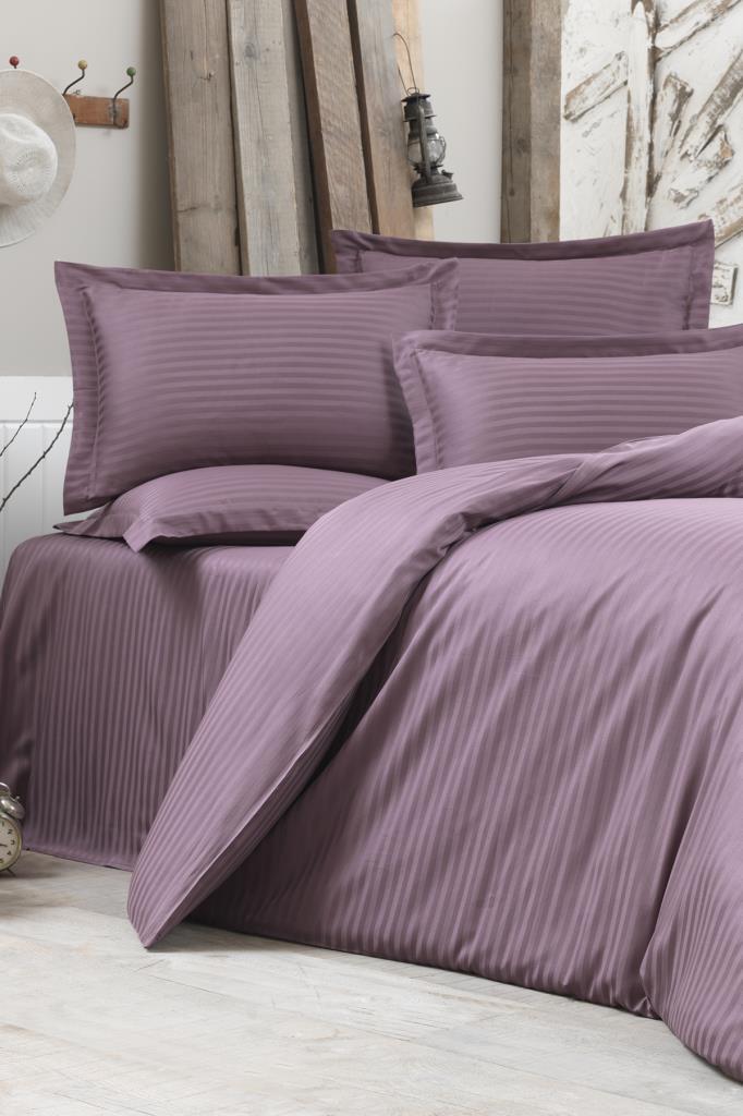 Çeyiz Diyarı Stripe Çift Kişilik PollySaten Nevresim Takımıı Lila