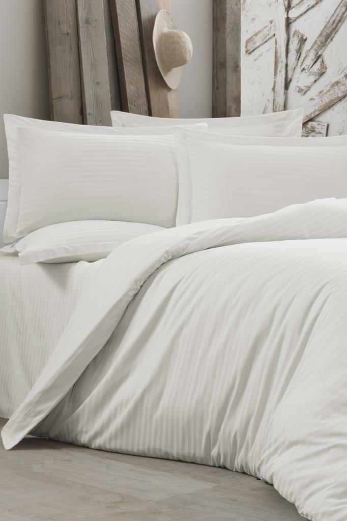 Çeyiz Diyarı Stripe Çift Kişilik PollySaten Nevresim Takımı Krem