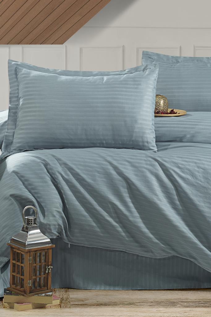 Çeyiz Diyarı Stripe Çift Kişilik PollySaten Nevresim Takımı Turkuaz