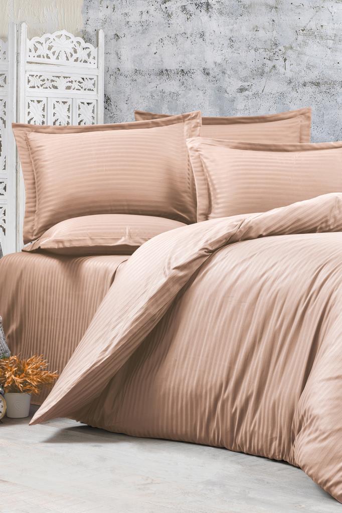 Çeyiz Diyarı Stripe Tek Kişilik PollySaten Nevresim Takımı Bej