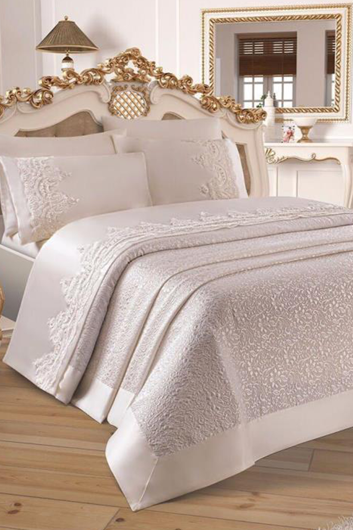 Çeyizdiyarı Fransız Güpürlü Diana Gelin Seti 7 Parça Krem