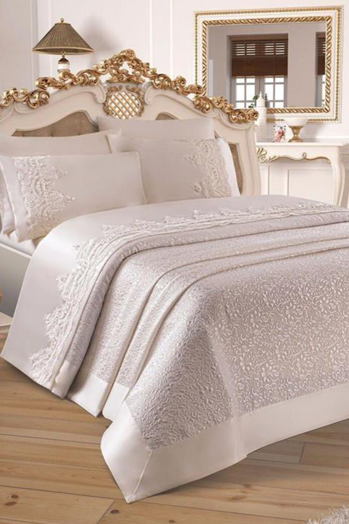 Çeyizdiyarı Fransız Güpürlü Diana Pike Seti 3 Parça Krem