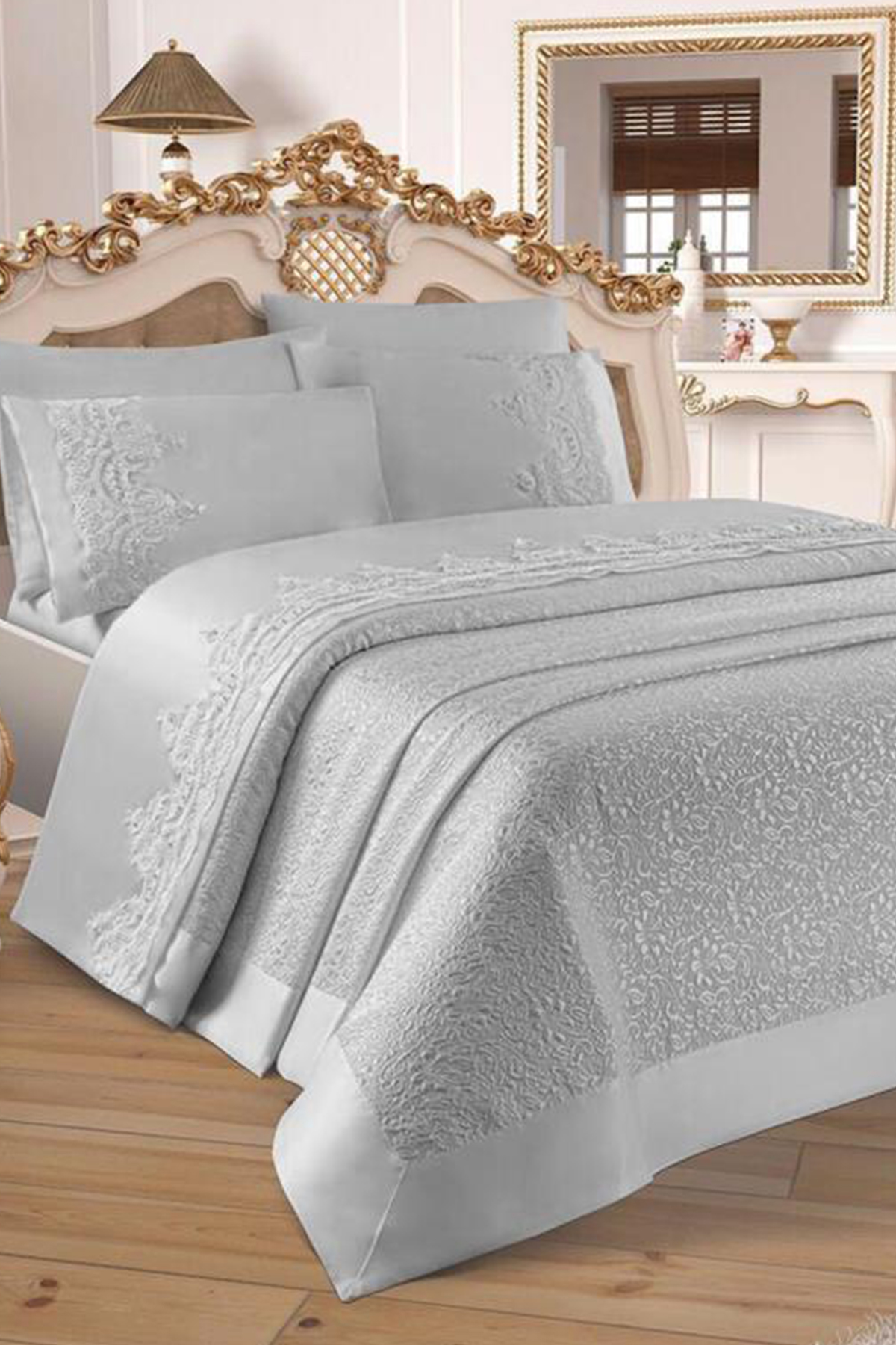 Çeyizdiyarı Fransız Güpürlü Diana Pike Takımı Gri