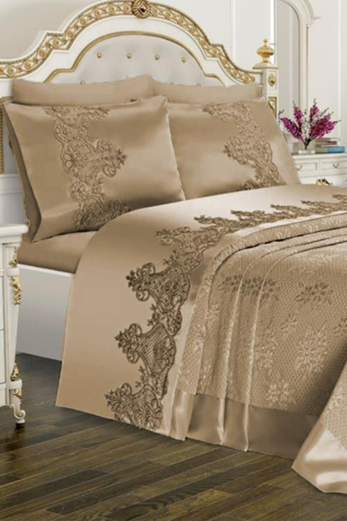 Çeyizlik Gelin Seti Dubai Sade 7 Parça Bej
