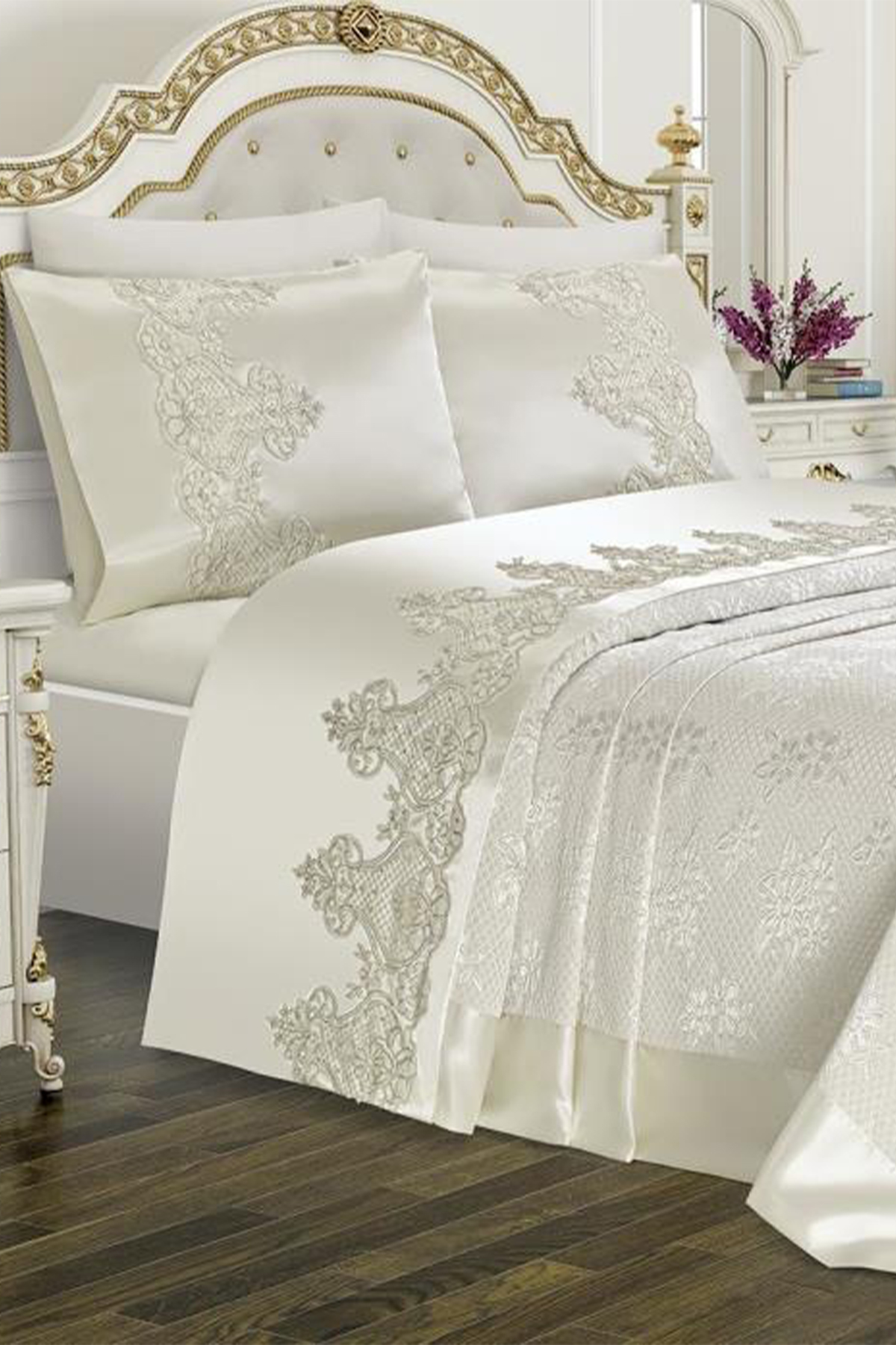 Çeyizlik Gelin Seti Dubai Sade 7 Parça Krem