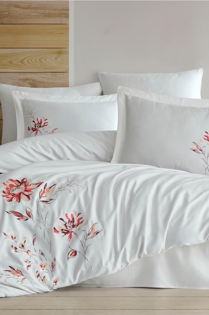 İmpero Nakışlı %100 Pamuk Saten Çift Kişilik Nevresim Takımı Krem