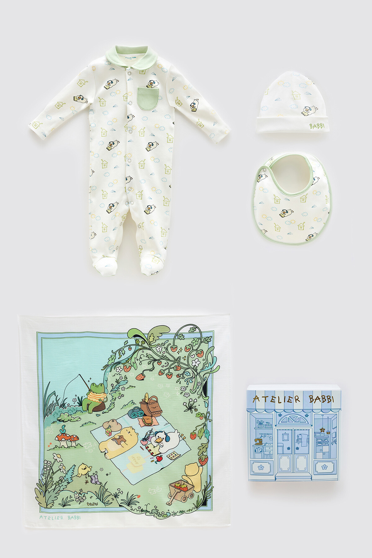 Atelier Babbi olarak, en değerli varlıklarınız olan bebekleriniz için yenidoğan hastane çıkışı setlerimizi özenle tasarlıyor ve sizlere sunuyoruz. Yenidoğan hastane çıkışı setleri, en kaliteli %100 pamuk kumaşlardan üretilmiştir. Set içeriği şu şekildedir; Tulum (0-3 ay) Müslin Örtü (70x70 cm) Yenidoğan Şapka Yenidoğan Önlük Ürün Özellikleri: • Malzeme: %100 Pamuk • Kumaş Türü: İnterlok • Baskı: GOTS sertifikalı boyalar ile baskı yapılmaktadır. Yıkama Talimatları: • 30 derecede ters çevirerek yıkayınız. • Kimyasal ve ağartıcı kullanmayınız. • Kurutma makinesinde kurutmayınız. • Yüksek ısıda ütülemeyiniz. • Yıkama talimatlarına uyulduğunda desen ve renk uzun süre ilk halini koruyacaktır.