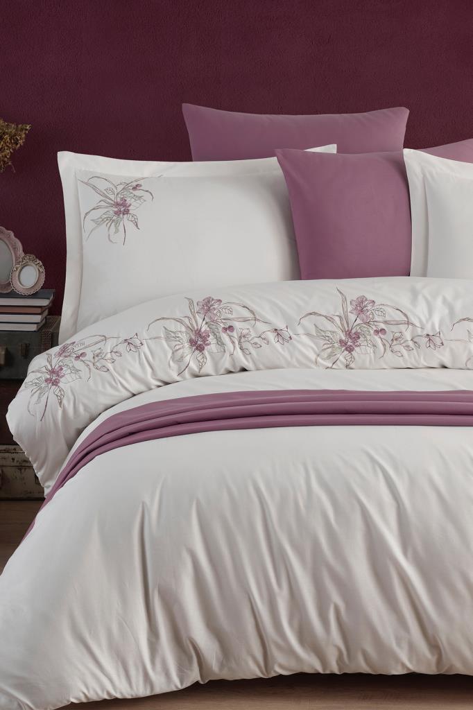Açelya Nakışlı %100 Pamuk Çift Kişilik Nevresim Takımı Ekru
