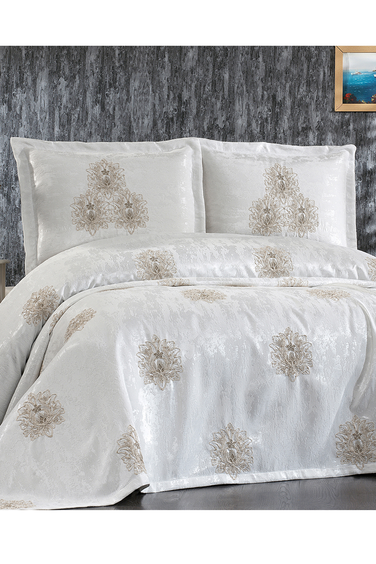 Always Fransız Güpürlü Çeyizlik Pike Takımı 4 Parça Krem