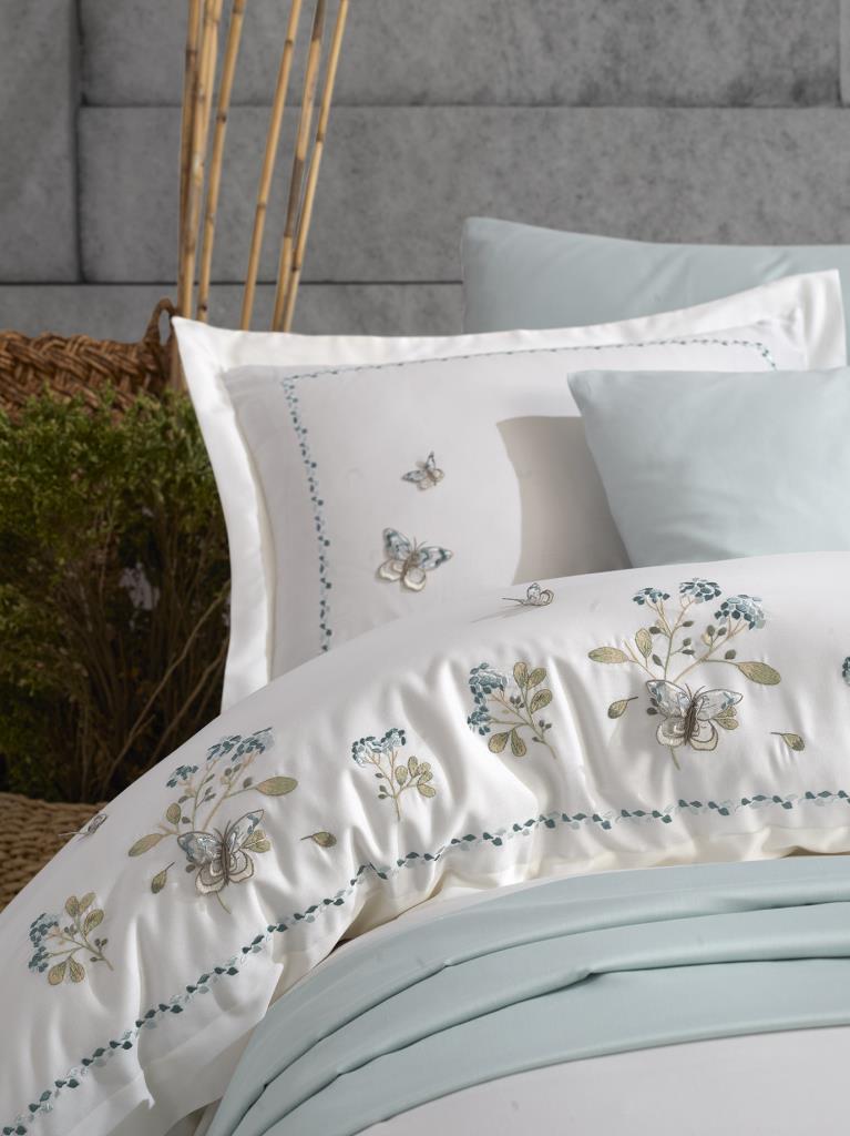 Artiva Nakışlı %100 Pamuk Saten Çift Kişilik Nevresim Takımı Ekru