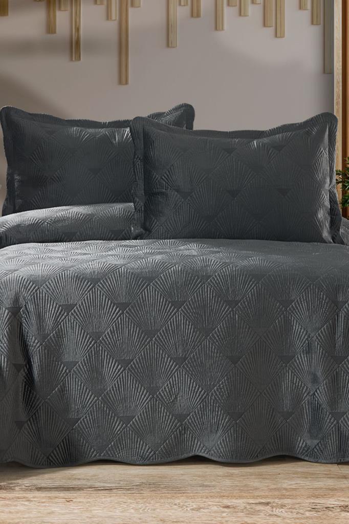 Arzen Nakışlı Kadife Çift Kişilik Yatak Örtüsü 250x260 Antrasit