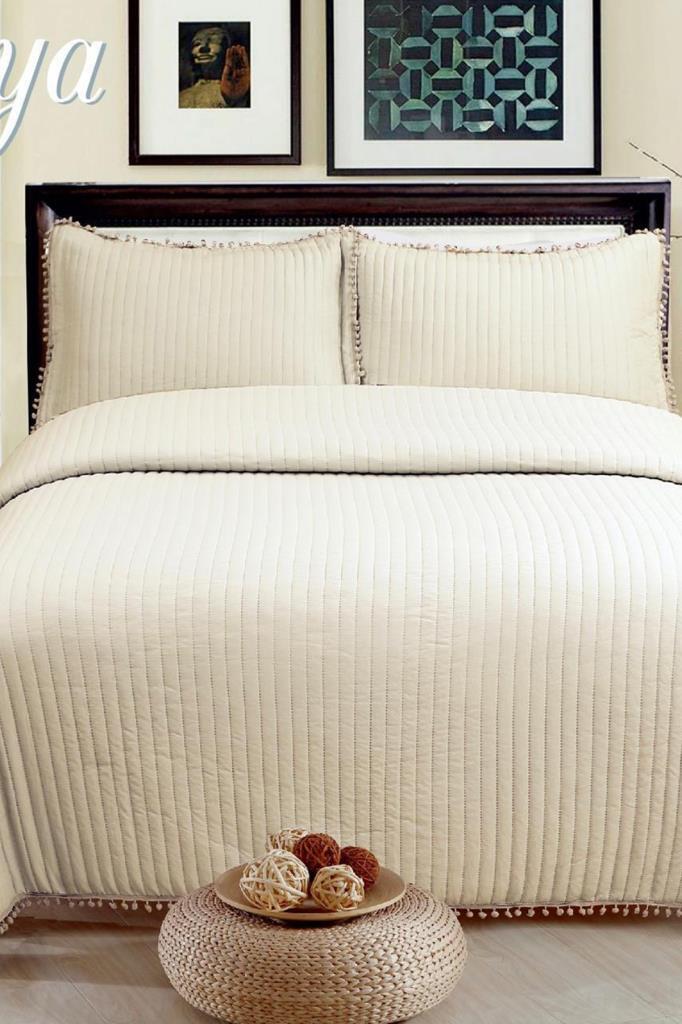 Asya Elyaf Dolgulu Tek Kişilik 180x240 Cm Yatak Örtüsü Bej