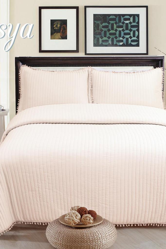Asya Elyaf Dolgulu Tek Kişilik 180x240 Cm Yatak Örtüsü Pudra