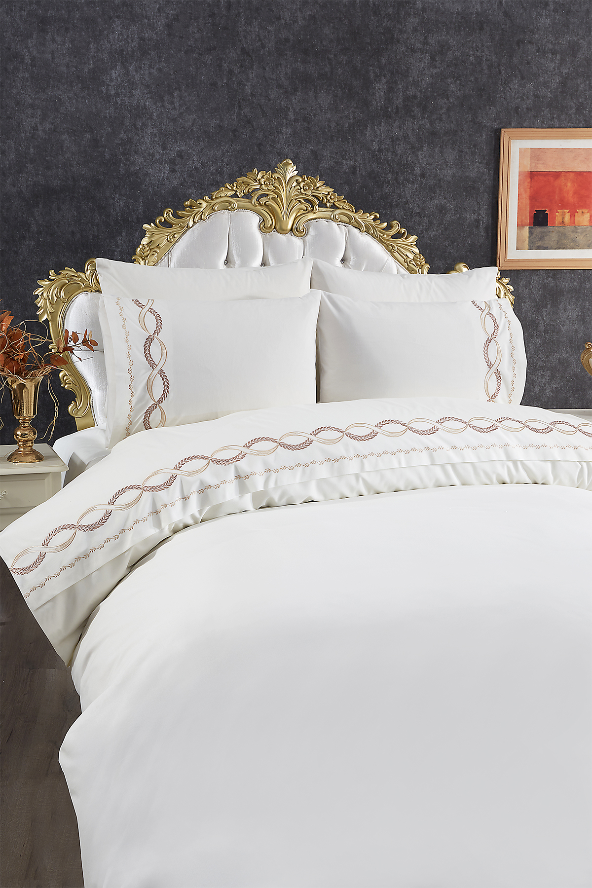 Başak Nakışlı 6 Parça Nevresim Takımı Krem