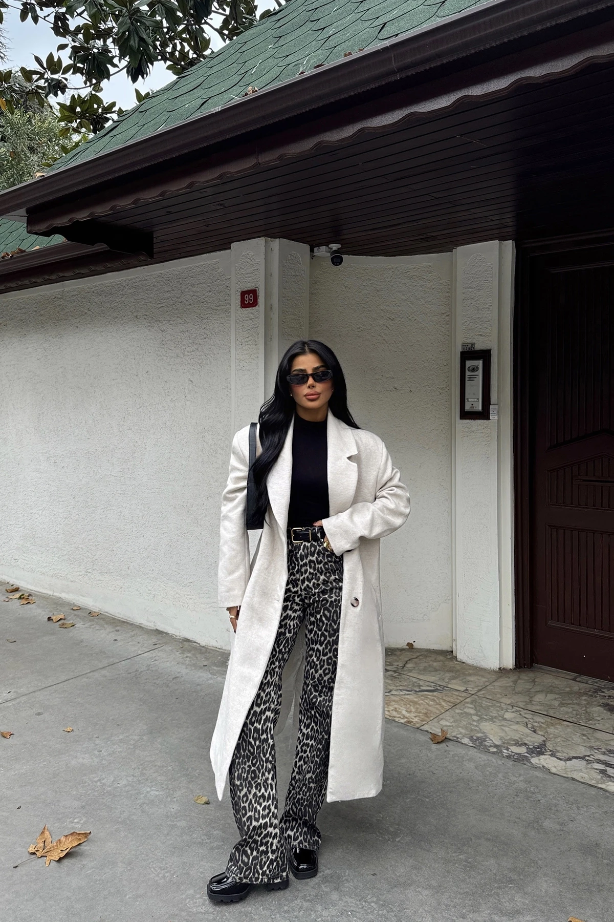 Beige Button Detail Coat XS size is used in the image. Made of Cashmere Fabric. Length:125 cm Chest:57 cm Model Measurements Height 158 ​​Weight 52 Chest 80 Waist 62 Hip 93