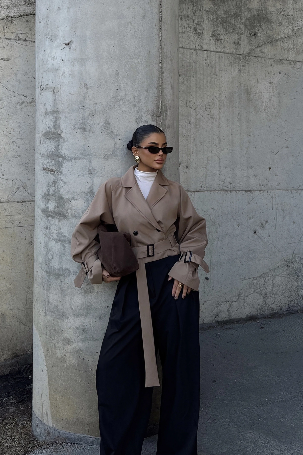 Beige Button-Front Jacket Size XS is used in the image. Height: 48 cm Bust: 51 cm Model Measurements Height 158 Weight 52 Chest 80 Waist 62 Hip 93