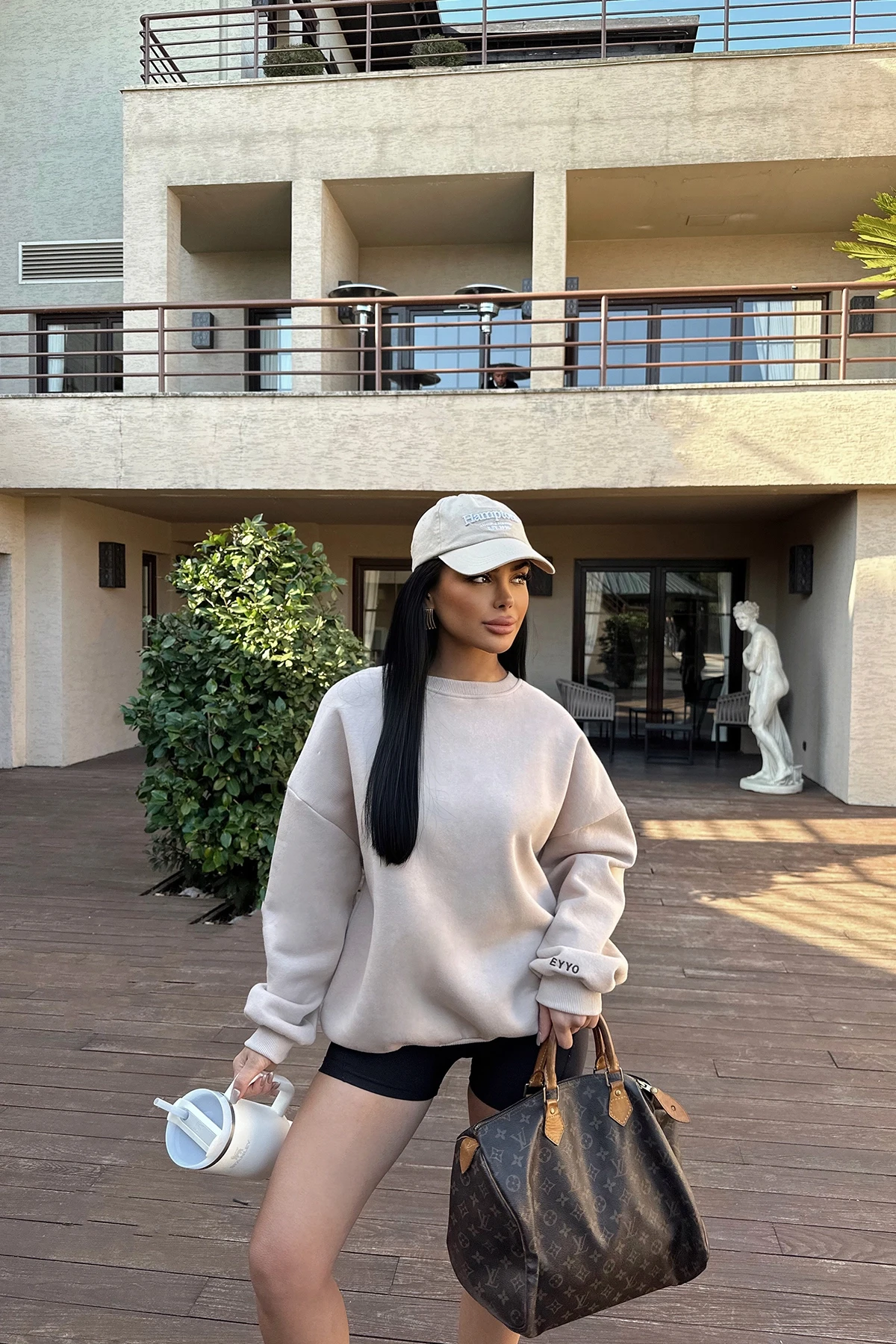 Beige Eyyo Written Sweat Visual SSTD size is used Sweat Length:65cm Chest:64cm Model Measurements: Height: 160 Weight: 50 Chest: 80 Waist: 62 Hip: 94