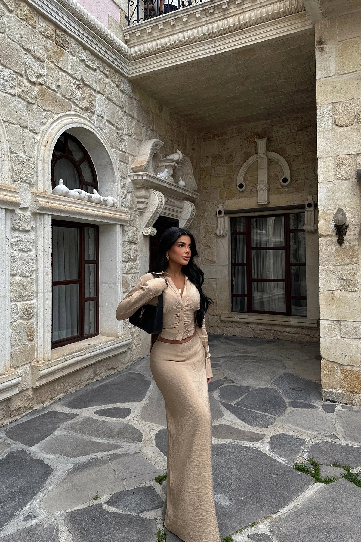 Beige Skirt Suit Size XS is used in the image. Made from Linen Fabric. Top Length: 52 Cm Bust: 45 Cm Bottom Length: 99 Cm Waist: 36 Cm Model Measurements Height 158 Weight 52 Chest 80 Waist 62 Hip 93