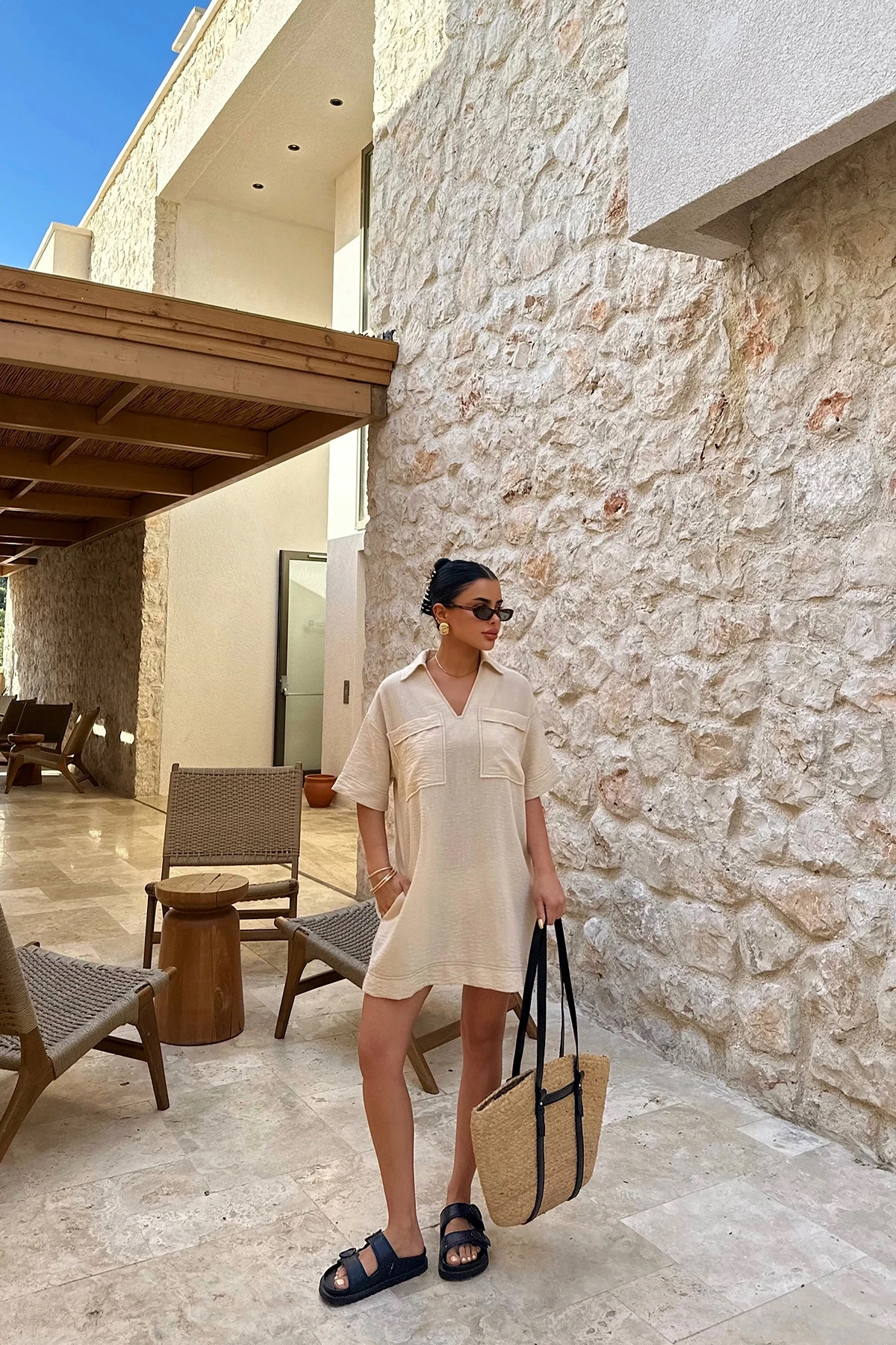 Beige Tilda Linen Shirt Dress Made from Linen Fabric Image size S is used Dress Length: 77 cm Bust: 58 cm Shoulder: 50 cm Model Measurements Height: 160 Weight: 50 Chest: 80 Waist: 62 Hip: 94