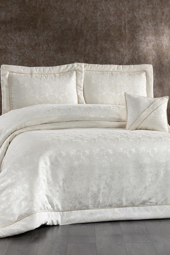 Beren Jakarlı Çift Kişilik Yatak Örtüsü Krem