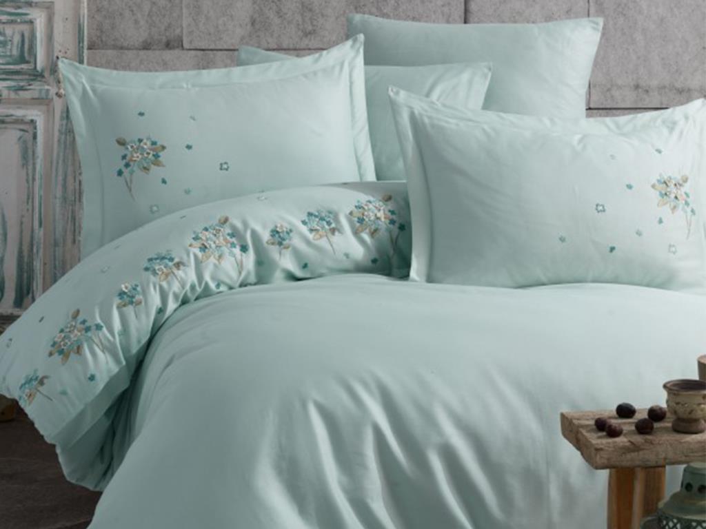 Betty Pamuk Saten Nakışlı Nevresim Takımı Nil Yeşili