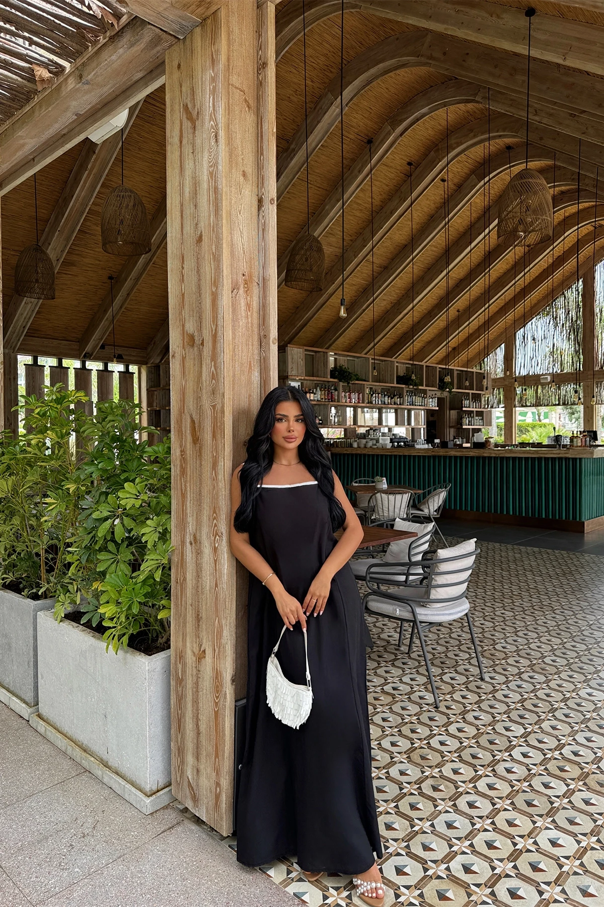 Black Amanda Long Dress Made from Linen Fabric Image size S is used Dress Length:140cm Bust:47cm Waist:54cm Model Measurements: Height: 160 Weight: 50 Chest: 80 Waist: 62 Hip: 94