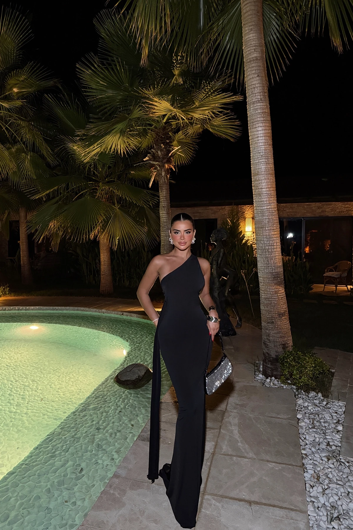 Black Back Tie Ring Detail Long Dress Made of Sandy Fabric Size S is used in the image Dress Length: 132cm Chest: 28cm Waist: 24cm Model Measurements Height: 160 Weight: 50 Chest: 80 Waist: 62 Hip: 94
