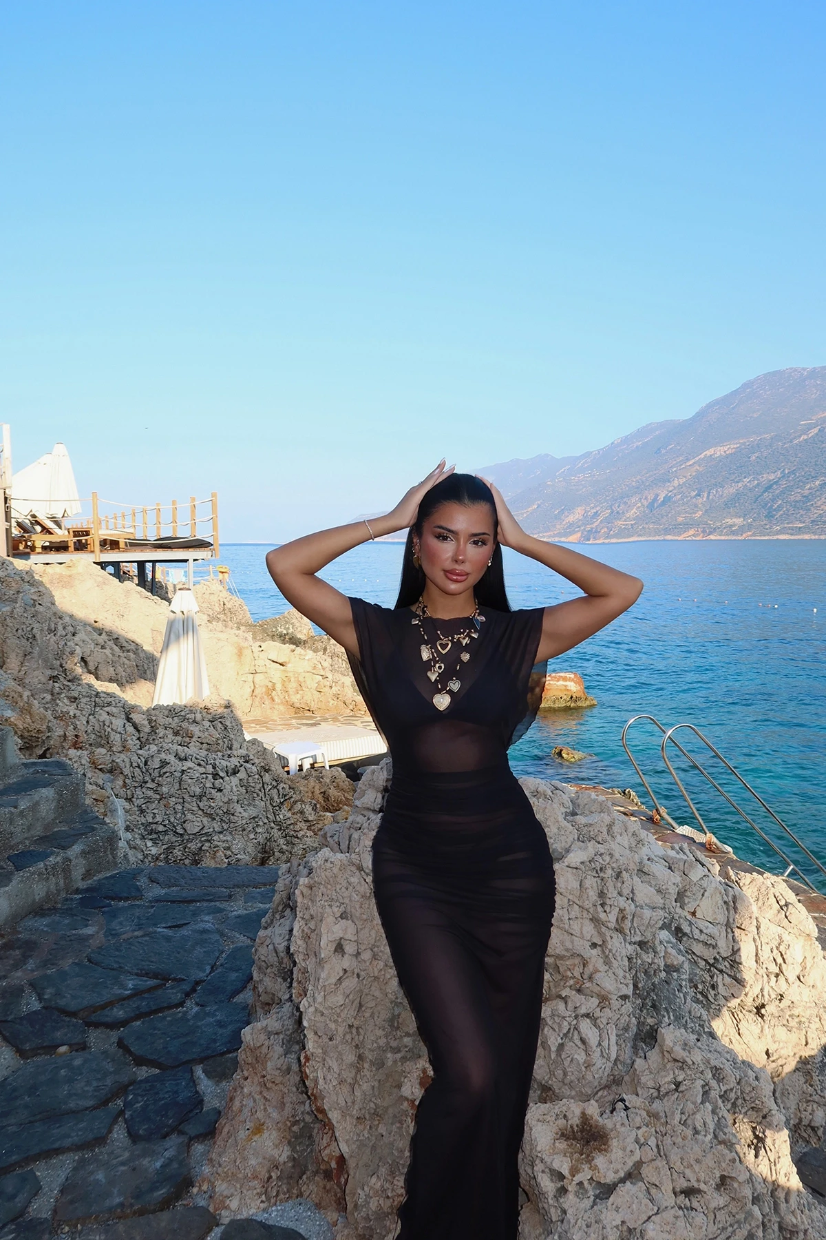 Black Basic Dress Size XS is Used in the Image Made from tulle fabric Dress length:148cm waist:43cm chest:46cm Model measurements height: 160 kilos: 54 Chest: 80 Waist: 60 Hips: 97