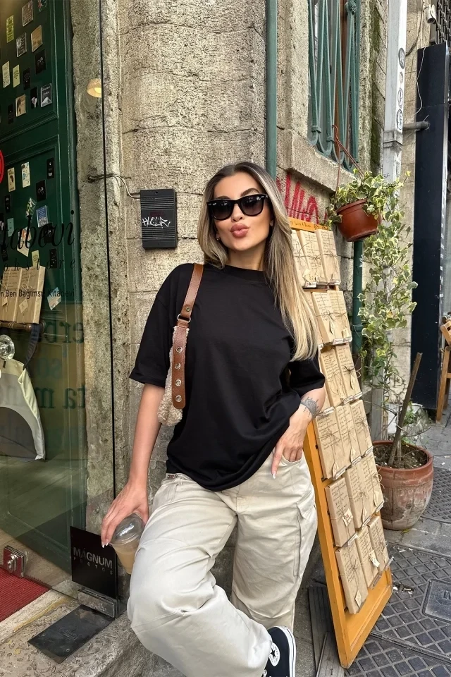 Black Basic T-Shirt Made from Combed Cotton Fabric Image size S is used T-Shirt Length: 73 Cm Chest: 58 Cm Model Measurements: Height: 171 Weight: 55 Chest: 85 Waist: 65 Hip: 105