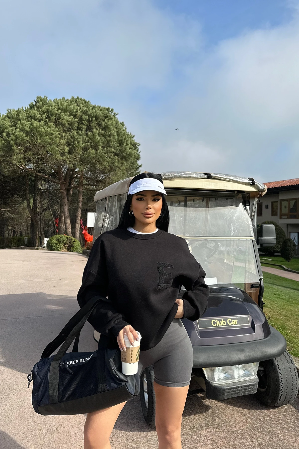 Black E Embroidered Sweat Made from Three Thread Fabric SSTD size is used in the image Sweat Length:67cm Chest:60cm Model Measurements: Height: 160 Weight: 50 Chest: 80 Waist: 62 Hip: 94