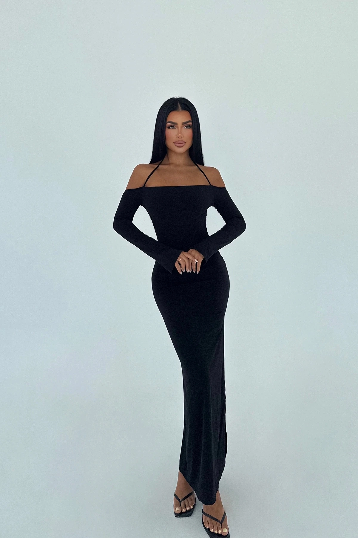 Black Long Sleeve Tied Dress Size S is used in the image. Made from Sandy Fabric Dress Length: 126 Cm Bust: 31 Cm Hips: 36 Cm Model Measurements: Height: 160 Weight: 50 Chest: 80 Waist: 62 Hip: 94