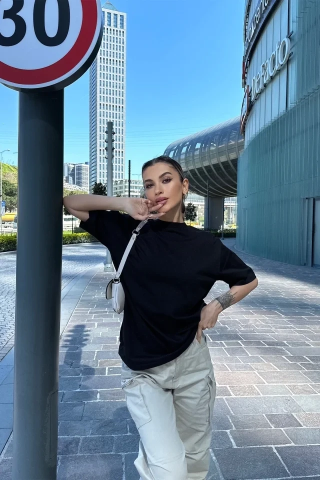 Black Loveless Written T-Shirt It is made of combed cotton fabric. Size S is used in the image. T-shirt length is 75 cm, chest is 55 cm. Model Measurements: Height: 171 Weight: 55 Chest: 85 Waist: 65 Hip: 105