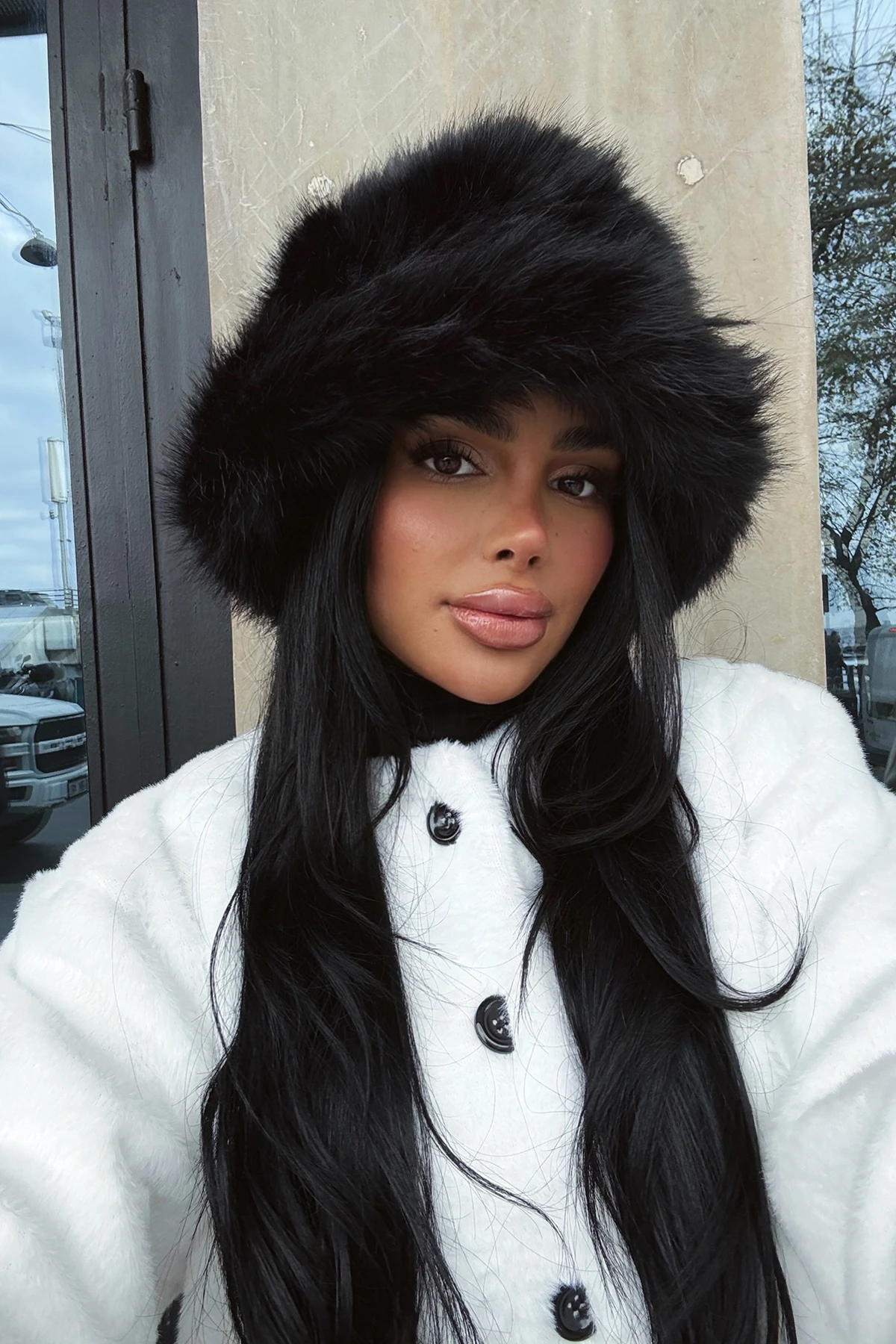 Black Plush Hat Standard Size Produced. Length: 23 cm Width: 35 cm Made from Imported Fur.