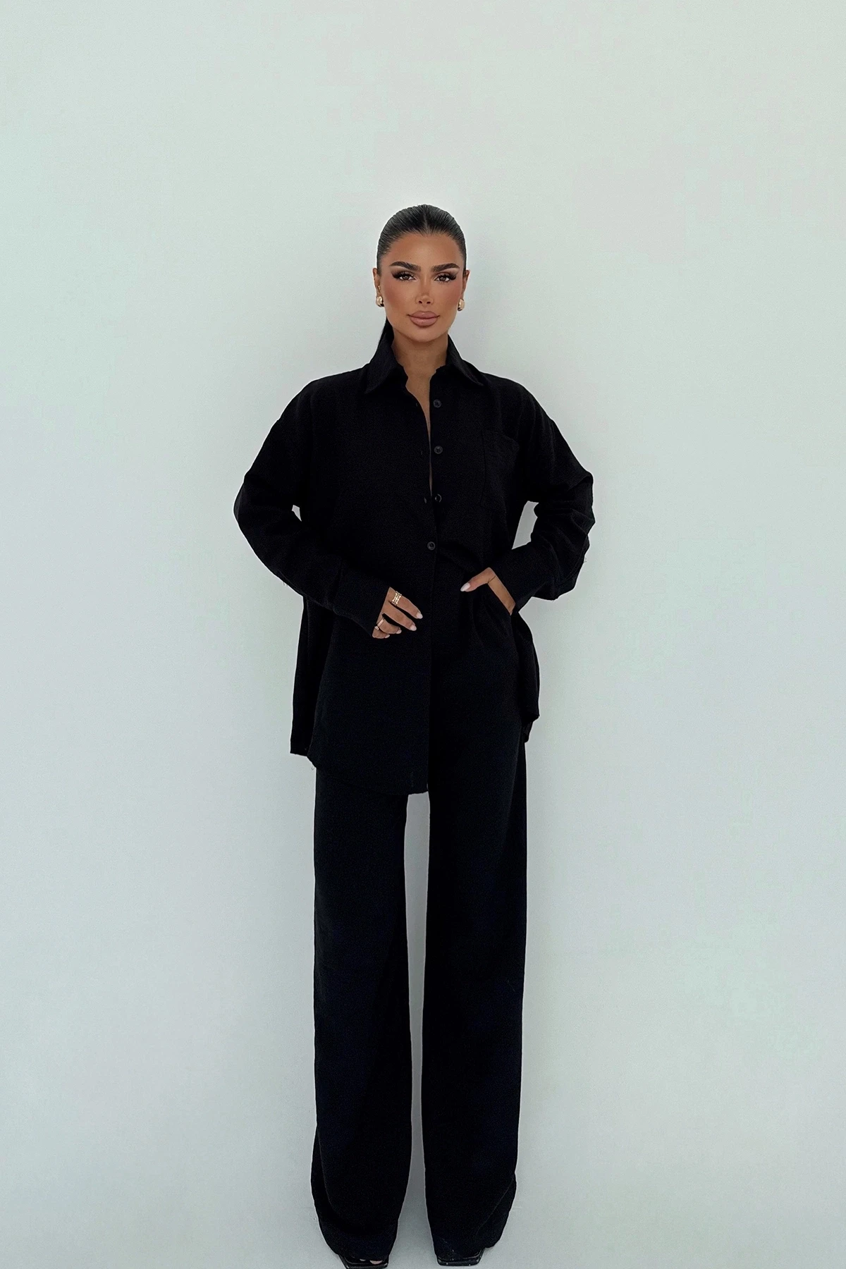 Black Pocket Detail Trouser Suit The image shows size XS. Top length 78 cm, chest 36 cm, bottom length 113 cm, waist 34 cm Model Measurements: Height 158 cm, Weight 52 cm, Chest 80 cm, Waist 62 cm, Hips 93 cm