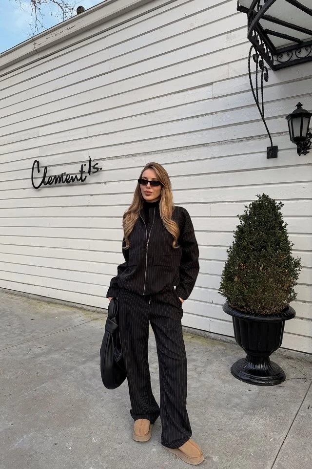 Black Pocket Detailed Trousers Suit Size XS is used in the image. Top Length:60 Cm Bust:61 Cm Bottom Length:105 Cm Waist:39 Cm Model Measurements Height 158 Weight 52 Chest 80 Waist 62 Hip 93